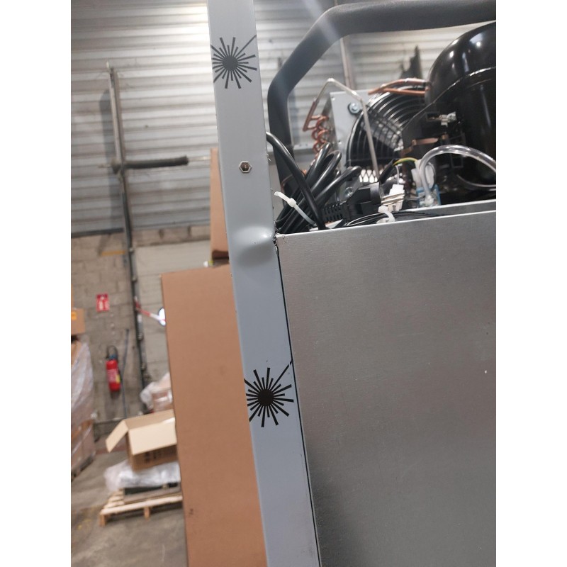 Cette armoire négative à réfrigération ventilée avec évaporateur protégé par couvercle en acier inox est munie de pieds réglables en acier inox, d'une porte vitrée, d'un système intelligent de dégivrage automatique qui varie en fonction de la présence réelle de givre, il ne fonctionne que le temps minimal nécessaire et limite ainsi la consommation dénergie. Son isolation est de 75 mm sans CFC, cette épaisseur réduit ainsi la déperdition de chaleur, le travail du compresseur et donc la consommation dénergie. Cette armoire réfrigérée est dotée de grilles galvanisées, de crémaillères verticales et de 3 jeux de glissières inox AISI 304 amovibles, d'un espacement entre les niveaux de 75 mm (17 niveaux fixes) et d'un système dévaporation de la condensation qui ne sactive quen présence deau suite au dégivrage. Les compresseurs Aspera garantissent une réduction des consommations de 15% et du niveau acoustique de 5 dBA. L'unité de condensation tropicalisée garanti le fonctionnement jusquà une température ambiante de +32°C. Le ventilateur s'arrête à louverture de la porte, ce qui réduit les changements de température et par conséquent le travail du compresseur.