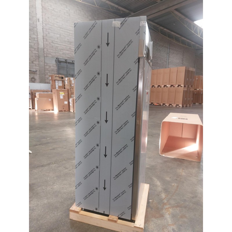 Cette armoire réfrigérée positive -2/+8°C, de COLDLINE, dispose d'une capacité de 600 litres. Elle est dotée d'une structure monocoque tout inox AISI 304 18/10 (sauf arrière de larmoire) avec des angles intérieurs arrondis, d'une porte avec fermeture à clef d'origine, d'une large poignée ergonomique intégrée sur toute la hauteur en acier inox AISI 304. Cette armoire réfrigérée positive professionnelle à réfrigération ventilée est équipée d'une porte à fermeture automatique, avec blocage de louverture à 105° et joints magnétiques facilement remplaçables, d'un éclairage intérieur, d'un évaporateur traité anti corrosion, d'un thermostat électronique (alarme température mini / maxi, alarme porte ouverte, ...)