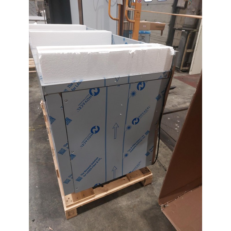 Cette table gastro GN 1/1 réfrigérée positive 0/+10°C, 3 portes, de DALMEC, dispose d'une capacité de 460 litres avec groupe frigorifique monobloc facilement extractible et tropicalisé ambiance 43° conformément à la réglementation en vigueur UNI EN ISO 239532:2006. Ainsi, cette table réfrigérée positive à 3 portes peut supporter un environnement extérieur de travail qui peut atteindre une température jusqu'à +42°C et avec 65% d'humidité. Réfrigération ventilé, isolation de 60 mm d'épaisseur en polyuréthane injecté à haute pression sans CFC ou HCFC, fermeture automatique des portes avec les joints magnétiques et position d'ouverture des portes fixe à 100 degrés. L'intérieur et l'extérieur de cette table réfrigérée positive est en acier inox ainsi que l'arrière de la table, les angles intérieurs sont arrondis pour un nettoyage simple et optimal. Mais aussi un panneau de commande frontal électronique avec détection des températures par l'intermédiaire des sondes NTC, dégivrage et évaporation automatique des eaux de condensation et pieds en acier inox réglables en hauteur de 110 à 180 mm.