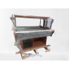 ***Vitrine avec des éclats et meuble en bois légèrement rayé***