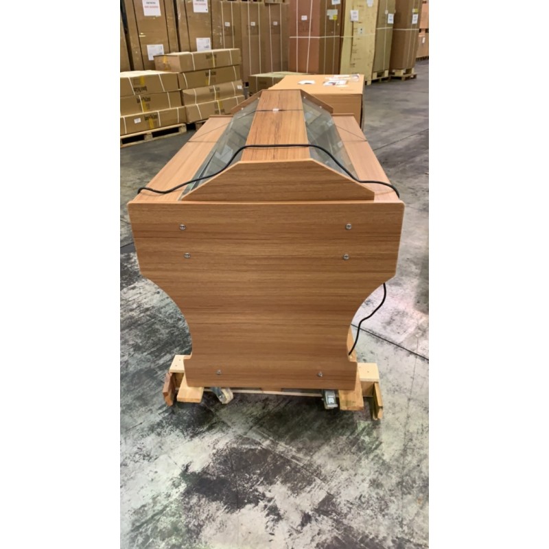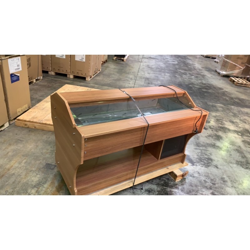 Température 0°C +10°C Réfrigération statique Coloris noyer Tablettes en granit coloris Rosa Porino Thermostat électronique Cuve inox AISI 304 Gaz réfrigérant : R134a Capacité 4 bacs GN1/1 profondeur 150 mm (bacs non fournis)