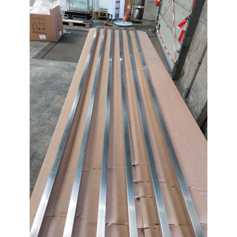 Étagère murale barreaudée avec un plateau hauteur 40 mm et bord arrière relevé tout inox AISI 441. Profondeur 400 mm et longueur de 1000 à 2000 mm, selon le modèle choisi. Existe aussi en profondeur 250, 350 ou 500 mm.