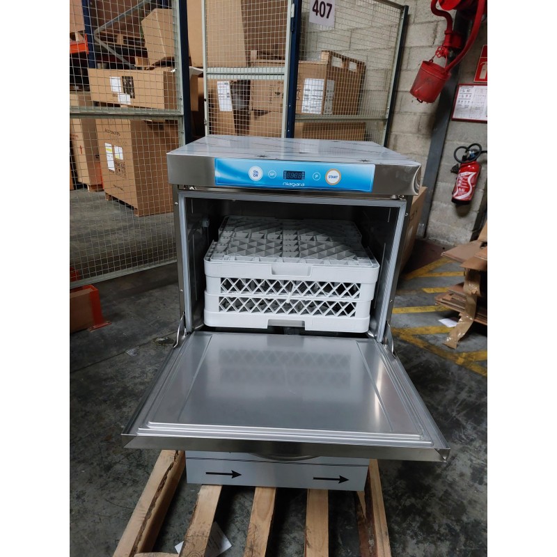 Ce lave-vaisselle ELETTROBAR utilise des paniers carrés de dimensions 500 mm x 500 mm avec une hauteur utile de 355 mm et dispose de 10 programmes de lavage.